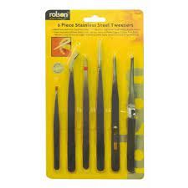 Stainless Steel Tweezers 6Pc